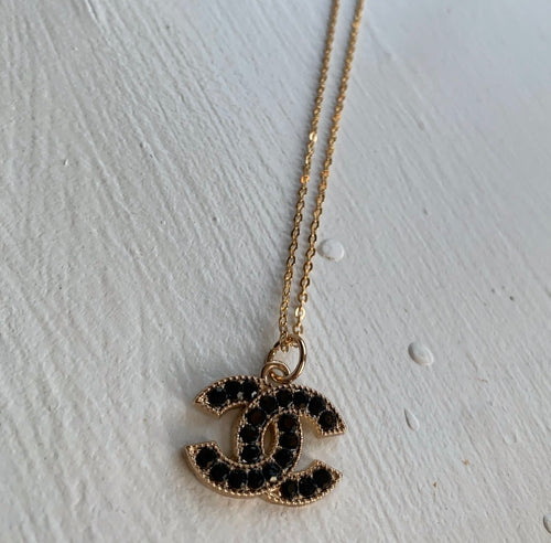 Black Crystal CC Necklace