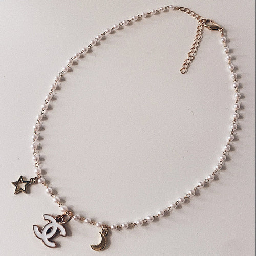 For The Love Of Luxury x Golden Crescent Star, Moon, & CC Pearl Necklace
