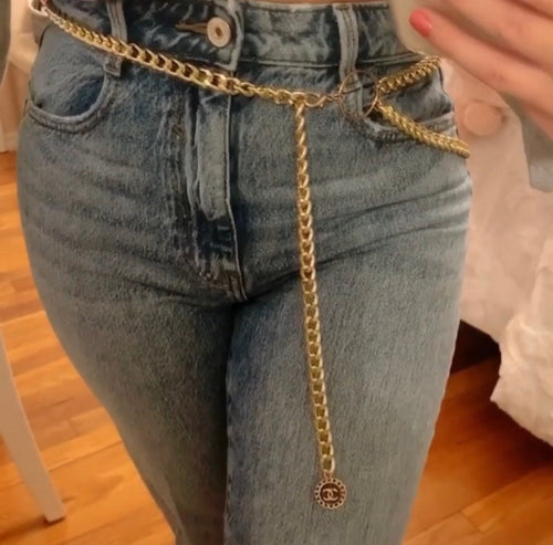 Gold Belt Chain with "Olivia" Charm in Black