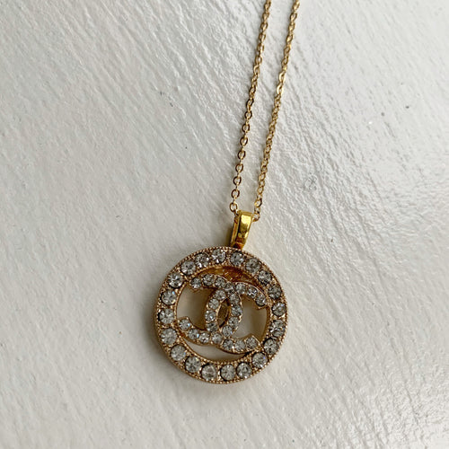 Gold Crystal or Pearl CC Necklace