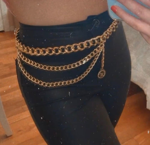 Gold Chunky Belt Chain with "Olivia" Charm in Black
