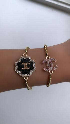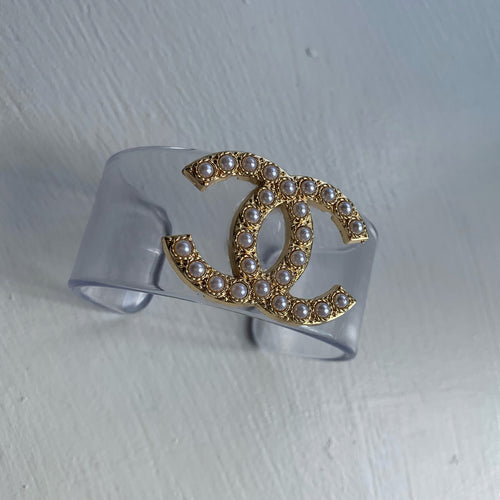 Big Gold Pearl CC Clear Acrylic Cuff Bracelet